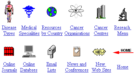 Welcome to "Guide to Internet Resources for Cancer". This site contains over 100 pages of links to cancer related information organised by disease, country, treatments, and other topics.